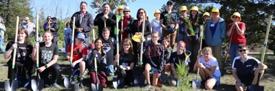 Community volunteers, along with over sixty students from Park Dale Public School planted three hundred and fifty trees and shrubs in Cascade Park on Friday morning.